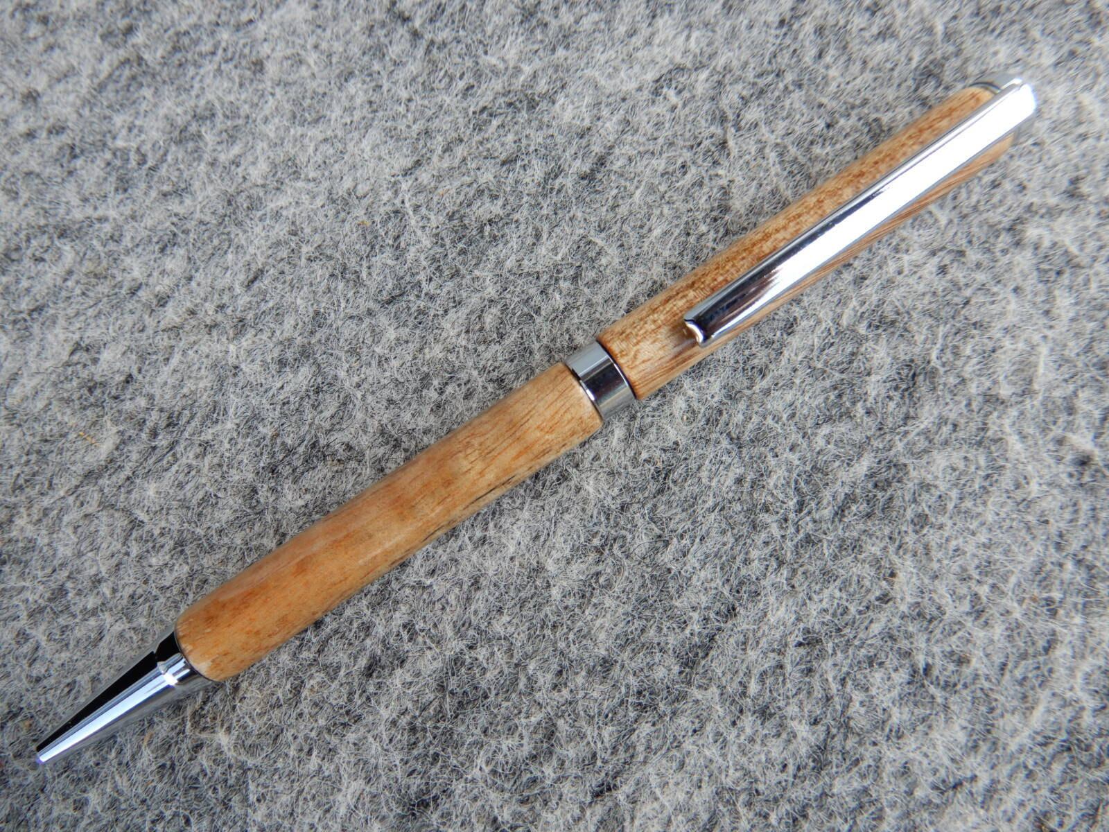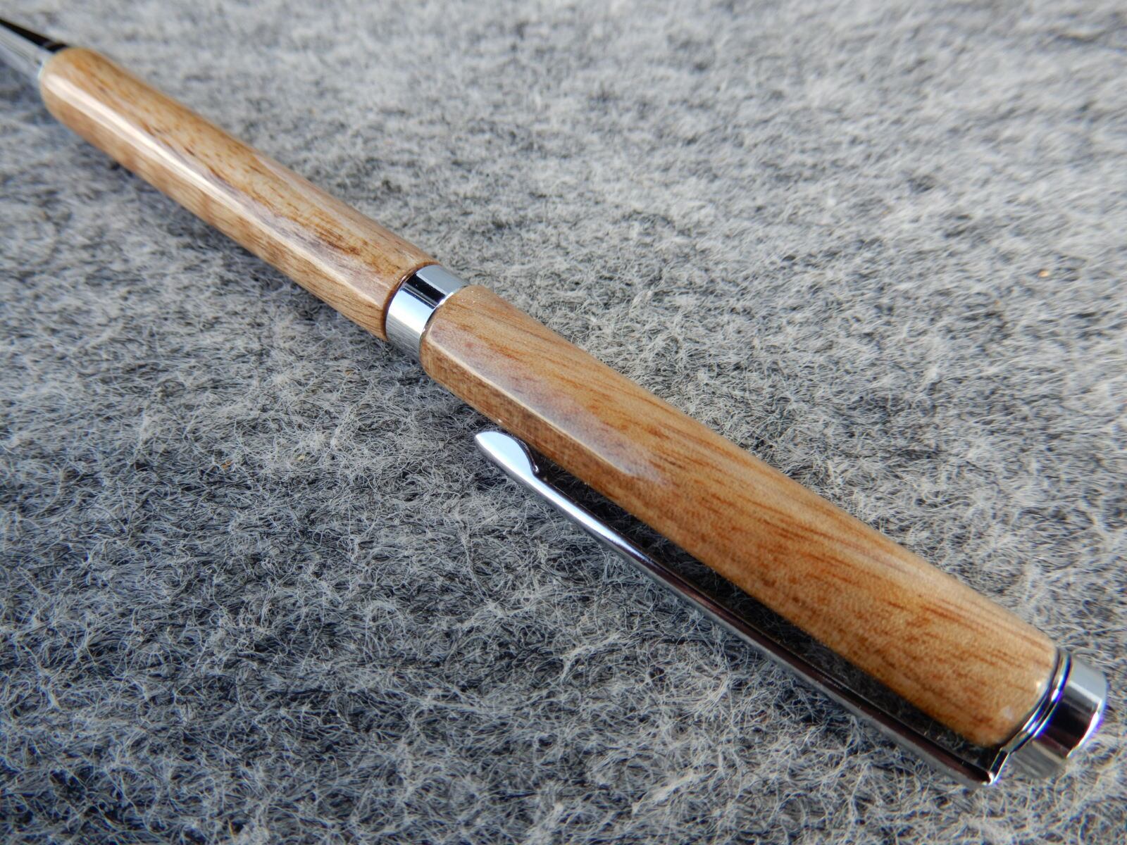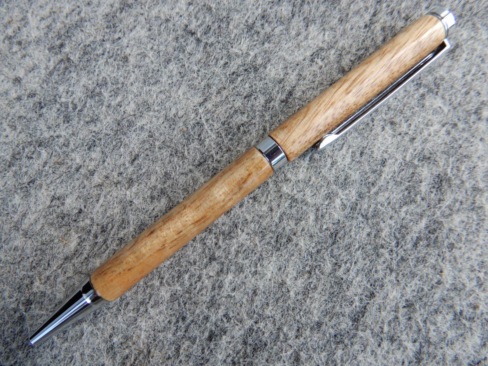 木軸の回転式ボールペンです。