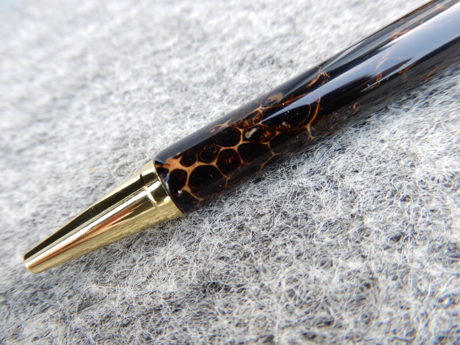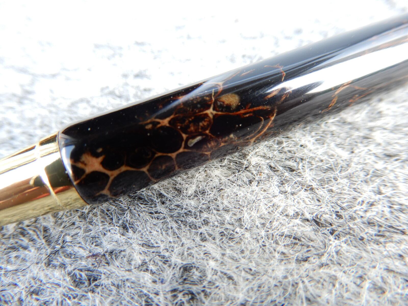 モミジバフウの実をレジンで固めて削り出しました。