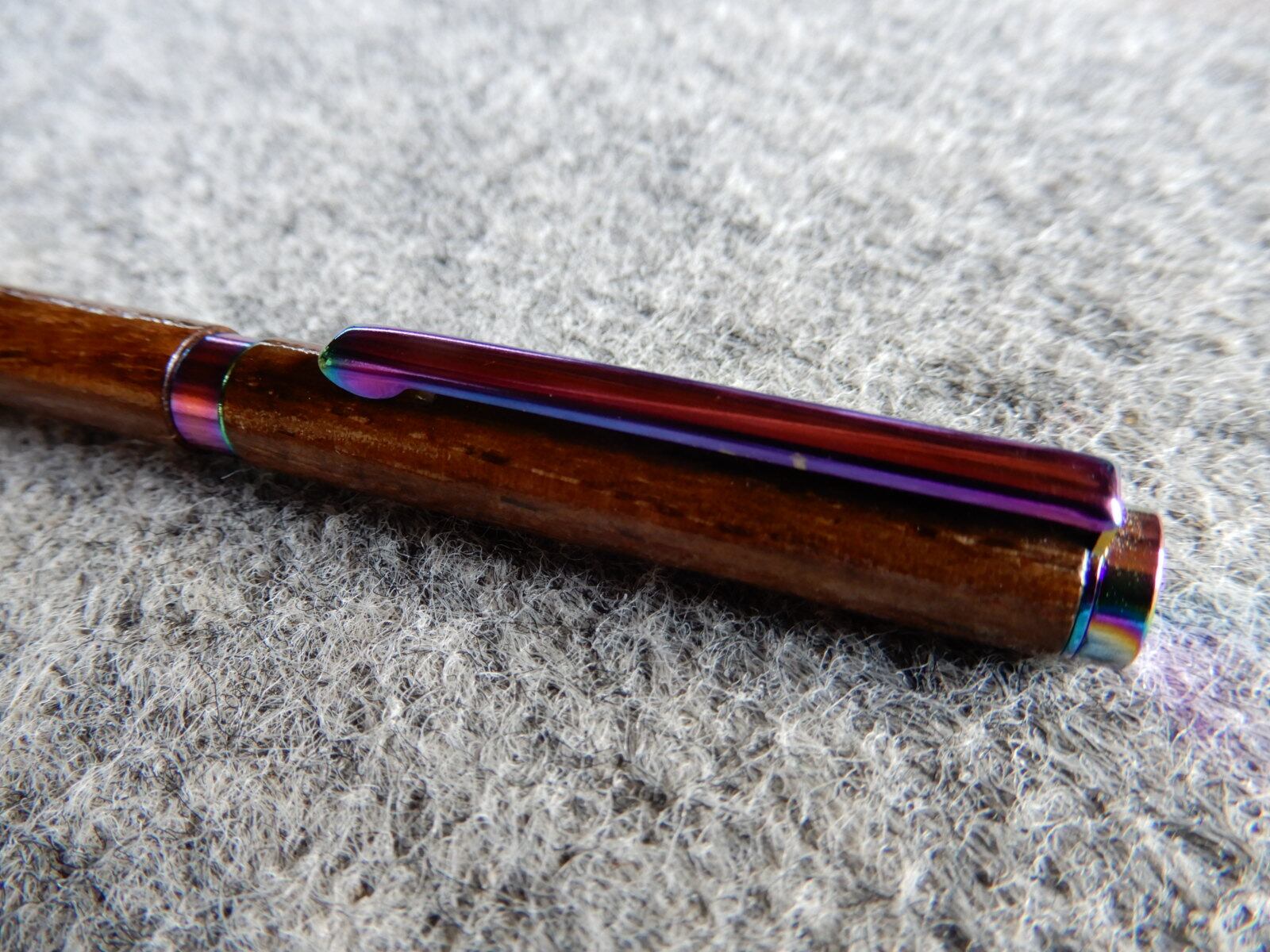 回転式ボールペン 長さ:約132mm 太さ:約9mm 材はホワイトアッシュ。着色塗装の仕上げです。 (商品番号:P019)